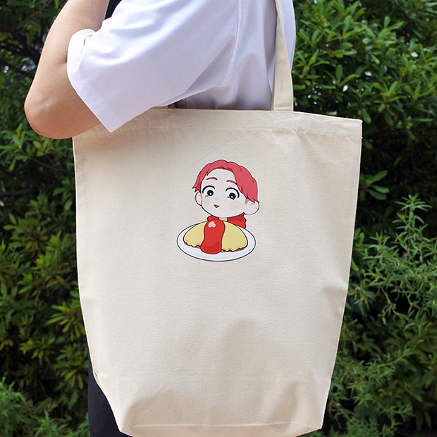 可愛らしいオムライス兄さんのイラストがプリントされたトートバッグ。