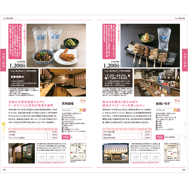 参加店舗のエリアは、仙台駅東口~西公園、北仙台~五橋、長町と使い勝手抜群。さらに今回は『仙台PARCO2』特集や「氷結Ⓡ」特集も掲載。